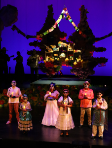 “La Muerte Baila” took the audience on a journey to the afterlife filled with humor and emotion. The musical trio played an important role, accompanying the stories of forgiveness and remembrance with songs full of meaning.