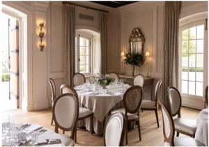 Indulge in the elegance of the recently remodeled Jordan Dining Room which offers a perfect setting for a luxurious Afternoon Tea experience in one of the most gorgeous wineries in California. Jordan Dining Room offers a warm and elegant backdrop for wine tasting with an array of tea sandwiches and petits fours, as well as beautiful foraged tea service.