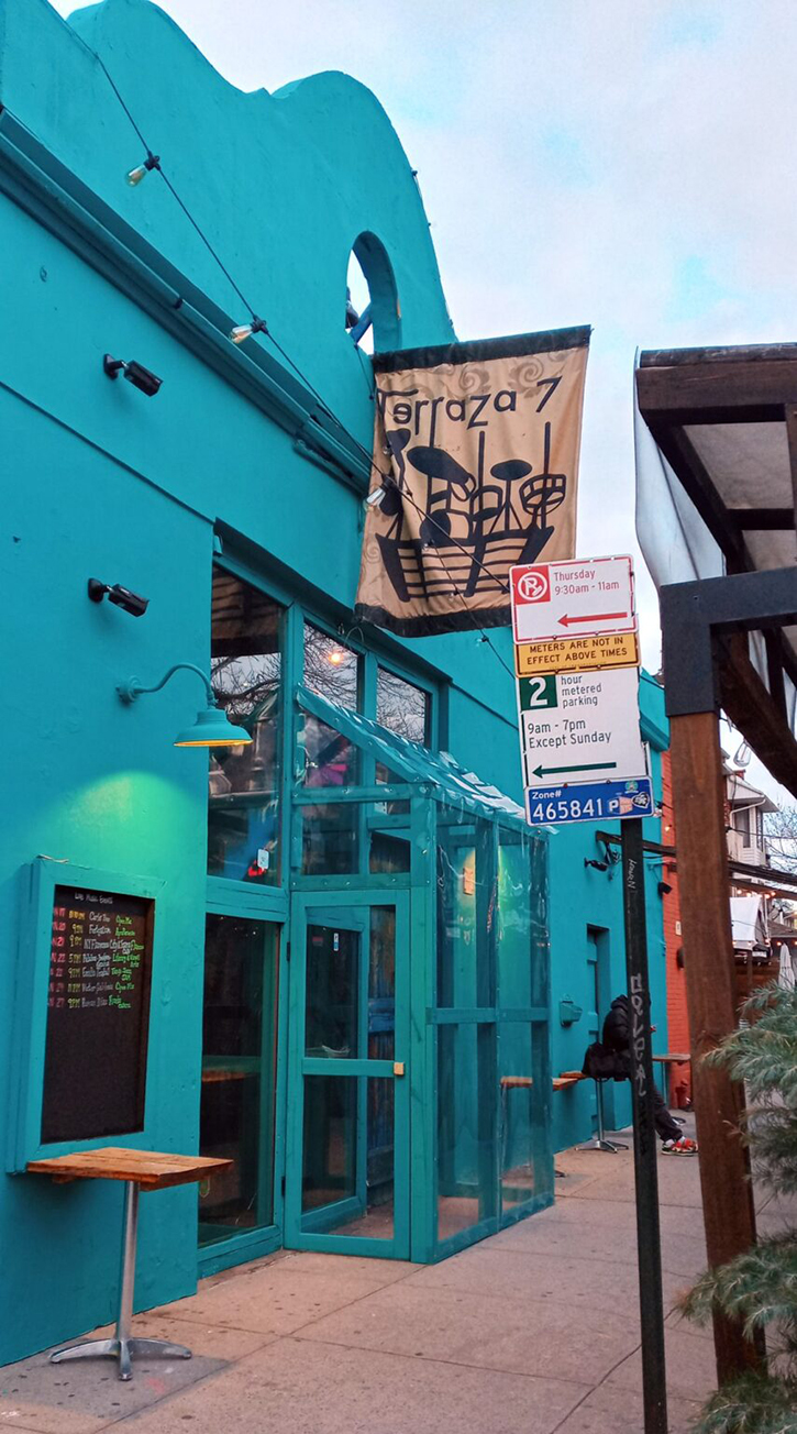 Terraza 7 es un club de jazz latino en Elmhurst, Queens, justo al otro lado de Roosevelt Avenue de Little Colombia en Jackson Heights. Es uno de los clubes nocturnos latinos más singulares de Nueva York. Es más jazz y folklórico que los demás. En realidad, Terraza 7 es más que un club nocturno, es una comunidad.