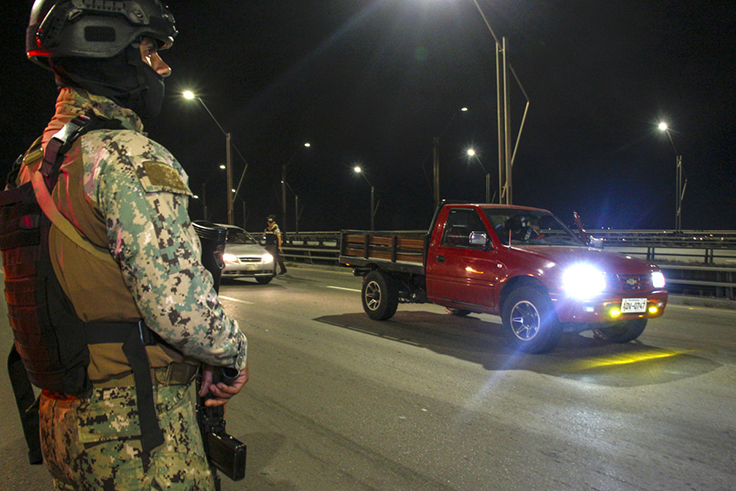 Uno de esos está ubicado en el ingreso a la ciudad, en mitad del puente que une a Guayaquil con los municipios de Samborondón y Durán, éste último uno de los más violentos del país, pues los agentes buscan evitar que los grupos criminales utilicen la noche para trasladar droga hacia los puertos y armas para perpetrar los asesinatos, que ya empiezan a registrarse fuera del horario de toque de queda.